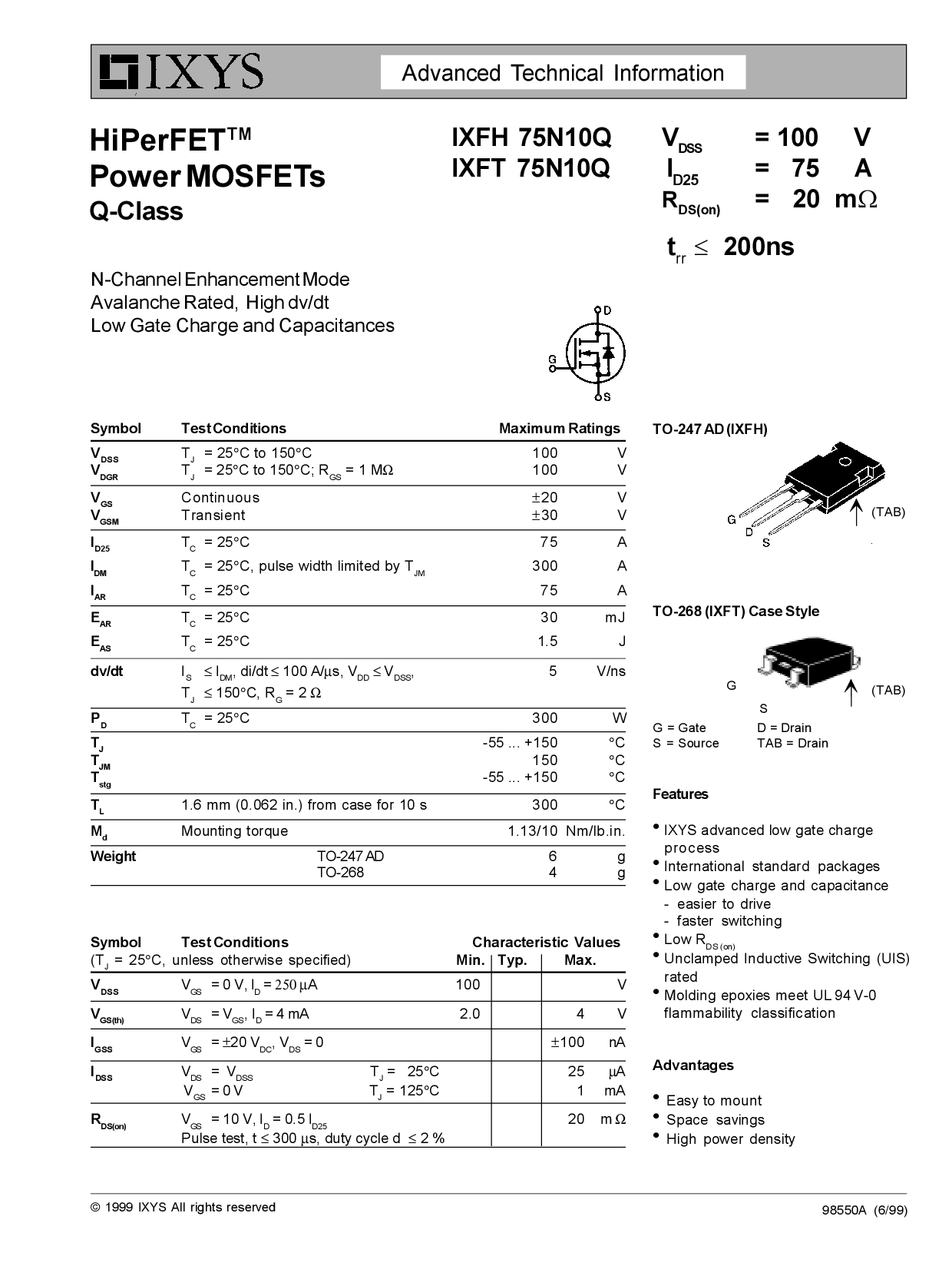 ixfh75n10q 最低价格10.00元 ,最高价格10.00元 ,平均价格 10元